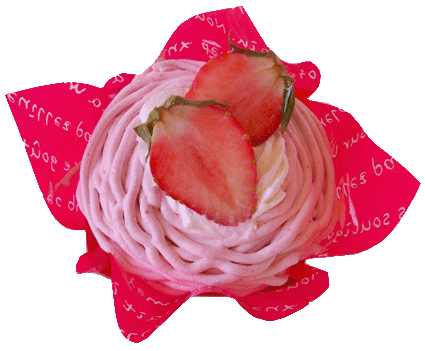 モンブランいちごクリームバージョン。生クリームといちごのクリームの甘さ控えめさがスポンジとマッチしています。