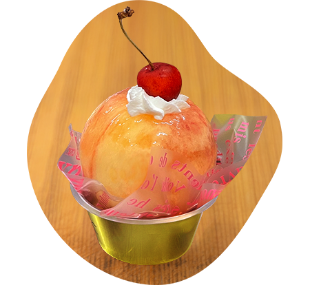 ロールケーキの上に種をくりぬきカスタードを詰めた桃がのっかってます。桃とクリームのバランスが最高の一品です。